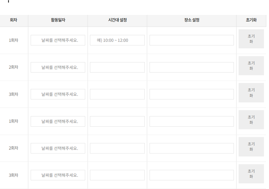 버튼 클릭시 해당 tr > td들만 제어하는 제이쿼리 이며 날짜, 시간, 장소를 초기화 하는 기능을 추가하였다.
