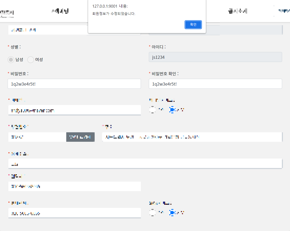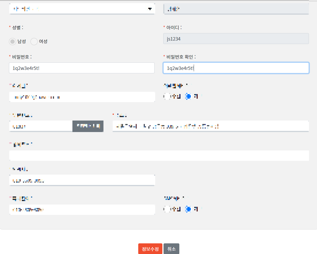 비밀번호를 1q2w3e4r5t!로 입력한 후 정보 수정을 누른다.