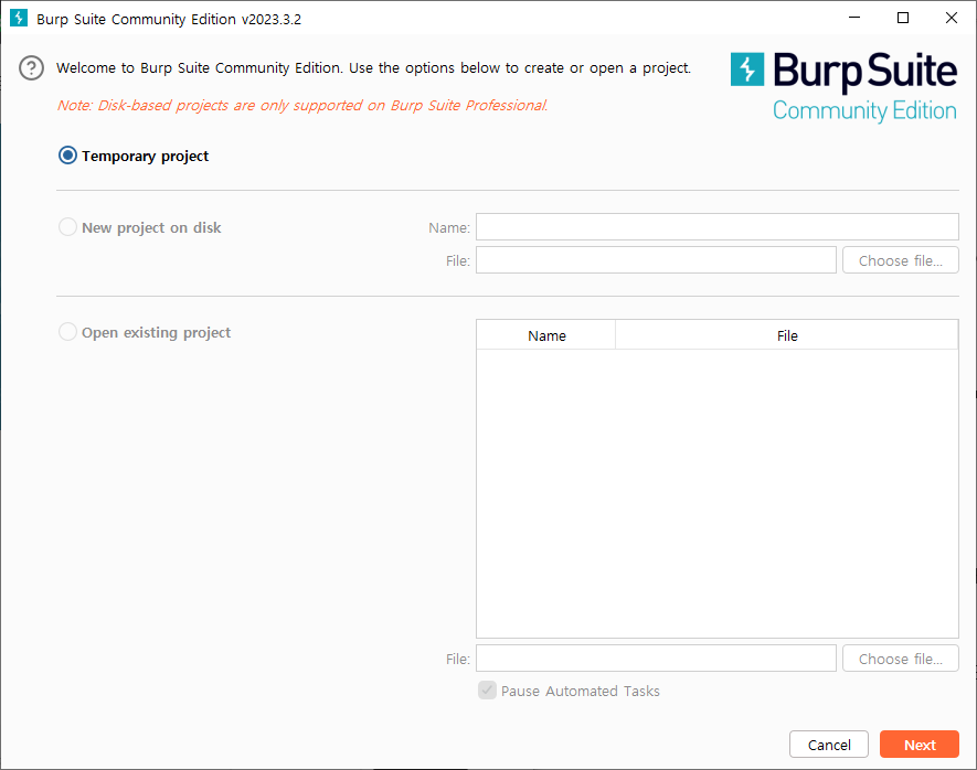 툴을 실행 시키고