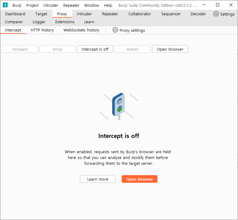 그 후 Intercept is off 클릭