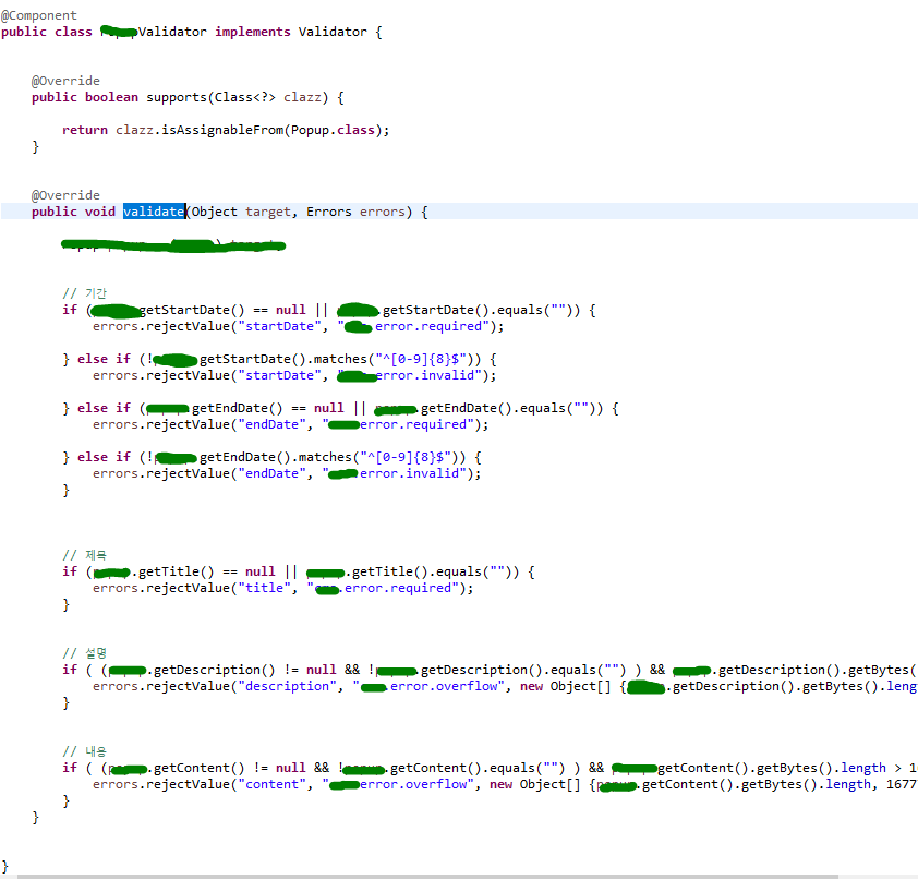 jsp단에서 서버로 전송한 변수(VO)를 Controller 쪽에서 validate를 호출하여 유효성 검사를 진행한다.