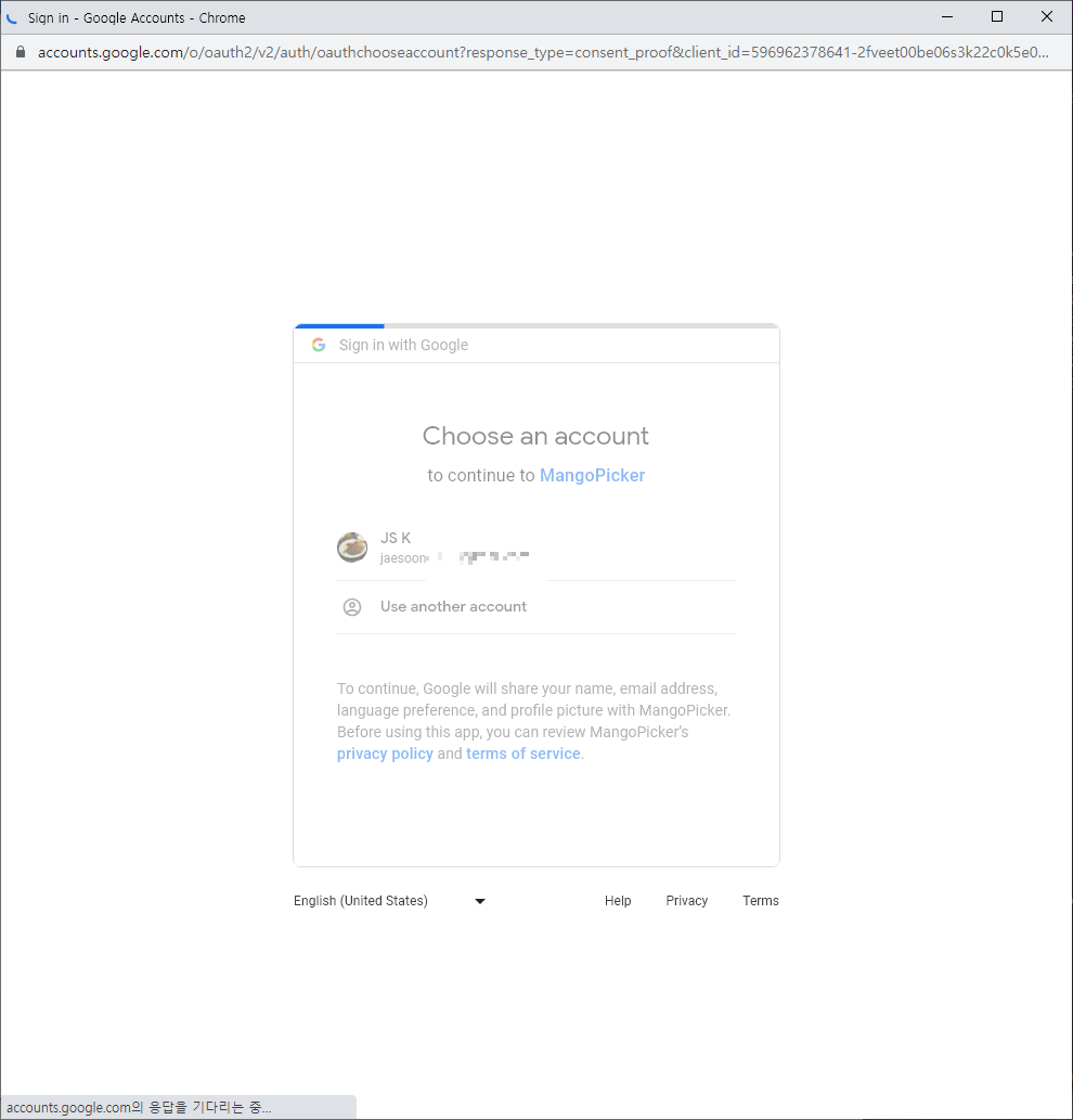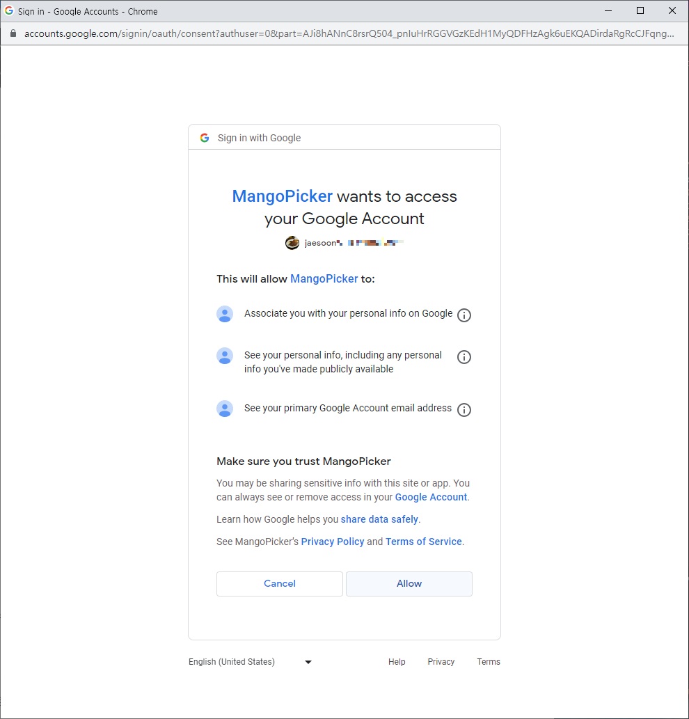 절차에 따라 진행 하면 이름과 email 값을 가져온다.