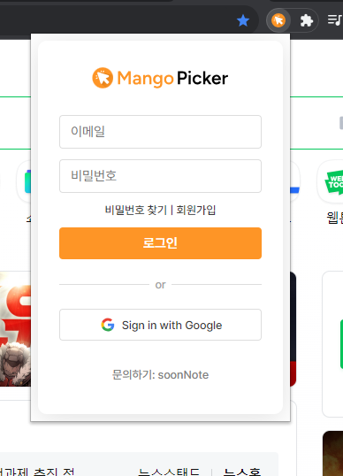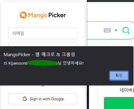 화면에보여지는 로그인form은 현재 서비스중인 mangoPicker 웹 매크로&크롤링 이며