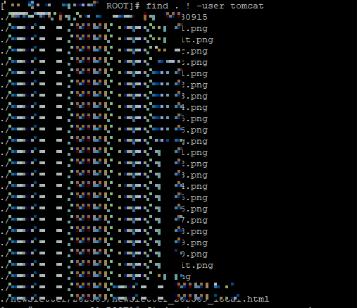 위 명령어로 소유자가 tomcat이 아닌 파일들을 찾았고