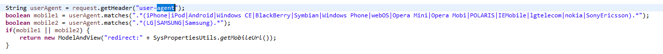 boolean mobile2 = userAgent.matches(".*(LG|SAMSUNG|Samsung).*");