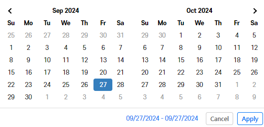 DateRangePicker도 DatePicker와 마찬가지로 당연히 함수와 이벤트들로 제어가 가능하다.